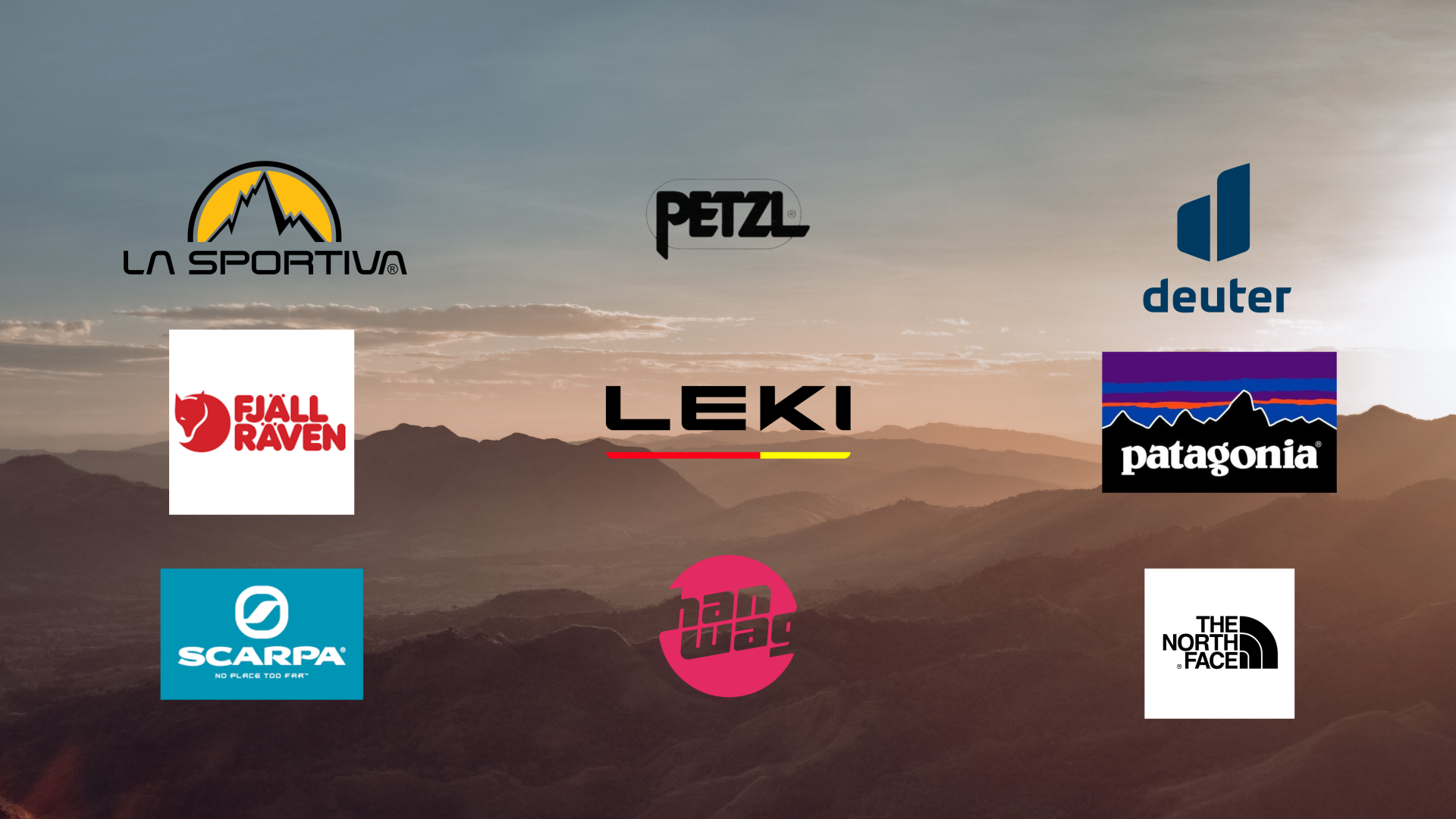 Aliens, Altidude, Arcade, Bavarian Caps, Blaband, Black Diamond, Brettschneider, Buff, Careplus, CEP, Climbing Technology, Chiba, Cocoon, Craghopper, Chimpanzee, Coleman, Dale of Norway, Deuter, Devold, Didriksons, E9, Eco, Brotbox, Edelrid, Esbit, Euroschirm, Exped, Falke, Filson, Fjällräven, Grayl, Gregory, Grivel, Grüezibag, Haglöfs, Hanwag, Helinox, Herbertz, Hestra, Hilleberg, Hydroflask, icebreaker, Ivanhoe, Klean Kanteen, Katadyn, Komperdell, La Sportiva, Leki, Ledlenser, Lightmyfire, Lowa, Lundhags, Mammut, Marmot, Maul, Meindl, Morakniv, Mountain Equipment, MSR, Nograd, Nordisk, Ocun, Ortovox, Ortlieb, Osprey, Opinel, Outdoor Research, Outdrop, PAC, Pajak, Patagonia, Petromax, Petzl, PIEPS, Primus, Rab, red chili, Relags, Rejka, Scandic, Scarpa, Schöffel, Seatosummit, Source, Stanley, Steinkauz, tatonka, Teva, The North Face, Trangia, Tickettothemoon, Vango, Vaude, Veith, Warmpeace, Woolpower, Wapiti, Wechsel, Wild Country, wrightsock, Uquip, Tubbs, ThermaRest, Y&Y Vertical